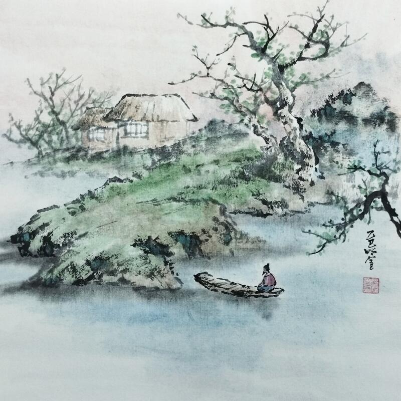Dieses einzigartige und originelle zeitgenössische Kunstwerk „Late Spring“ wurde vom zeitgenössischen Künstler Du Mingxuan geschaffen. Der Künstler verwendete die Techniken Aquarell und Tusche, um dieses kleinformatige Gemälde auf Papier im figurativen Stil zu schaffen.