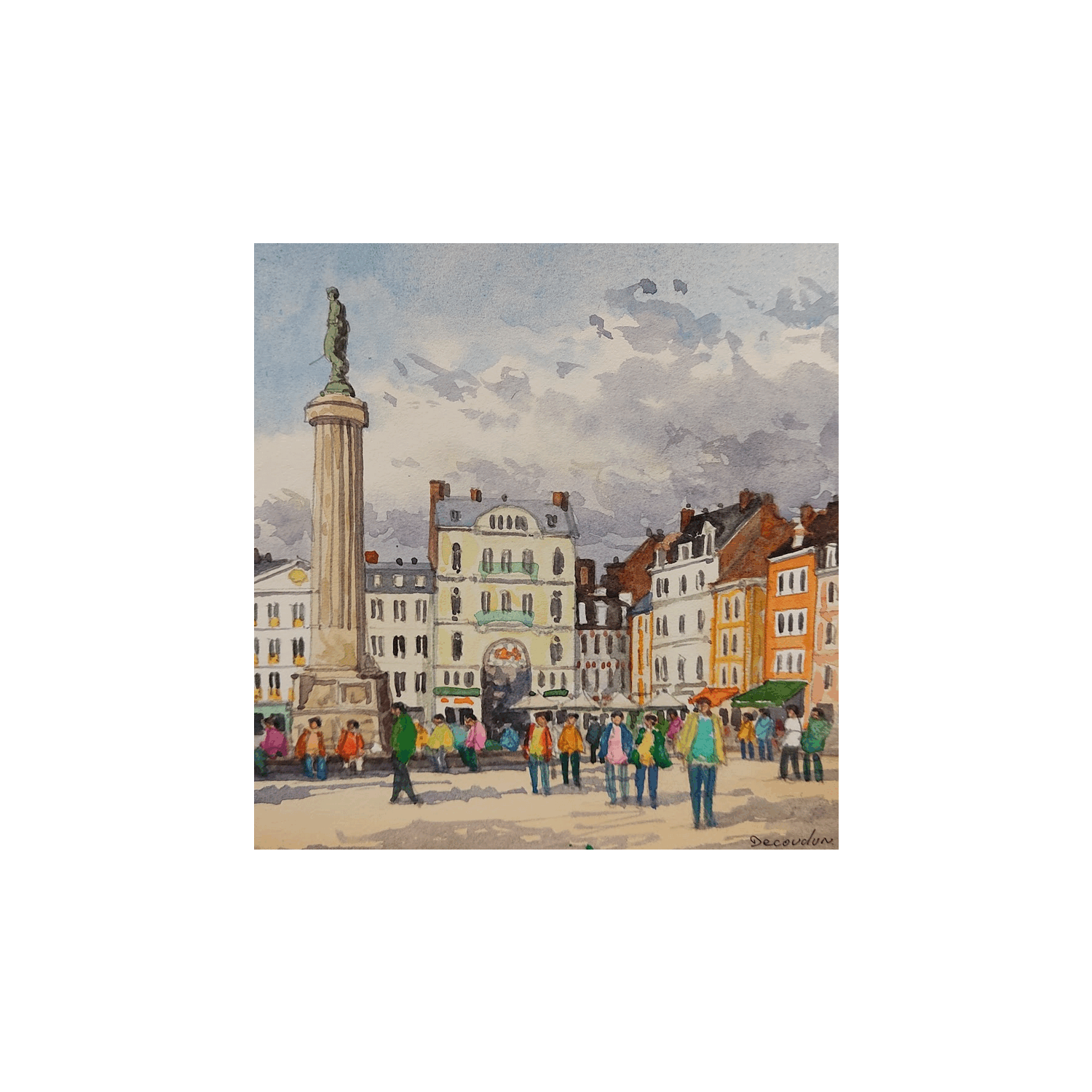 Dieses einzigartige und originale zeitgenössische Kunstwerk "Coup de vent à Lille" in dem Stil "Figurativ" wurde von dem zeitgenössischen Künstler Decoudun Jean charles kreiert.