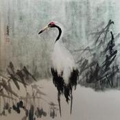 Dieses einzigartige und originelle zeitgenössische Kunstwerk "Crane in winter" wurde von dem zeitgenössischen Künstler Du Mingxuan geschaffen.