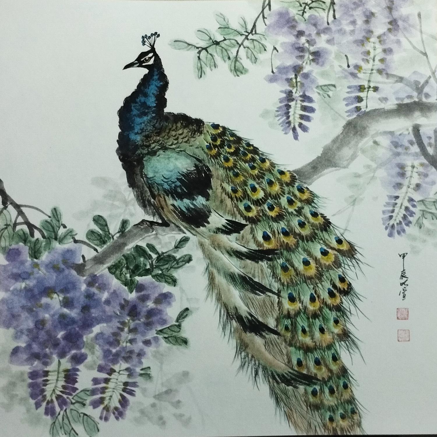 Dieses einzigartige und originelle zeitgenössische Kunstwerk "Peacock" wurde von dem zeitgenössischen Künstler Du Mingxuan geschaffen.