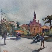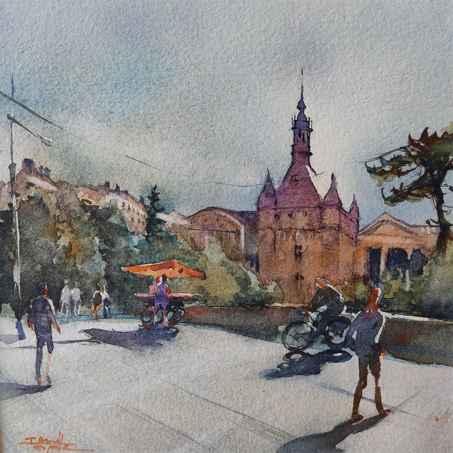 Der Künstler verwendete Aquarell auf Papier, um dieses Kleine Gemälde zum Thema "Urban, Alltagsszenen" anzufertigen.