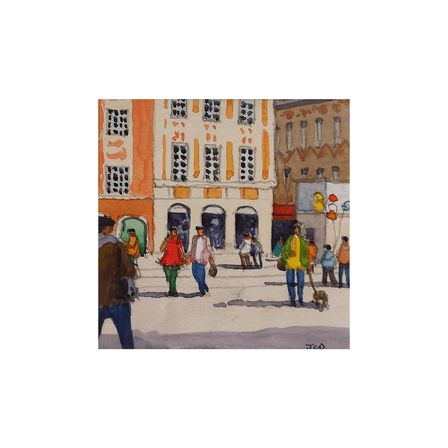 Der Künstler verwendete Aquarell auf Papier, um dieses Kleine Gemälde zum Thema "Urban" anzufertigen.