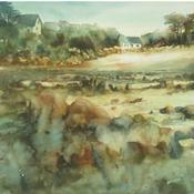 Son coin de paradisGemälde Son coin de paradis von Abbatucci Violaine | Gemälde Figurativ Aquarell