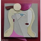 Der Künstler verwendete Holz, Pappe, Collage, um dieses Kleine Gemälde zum Thema "Porträt" anzufertigen.
