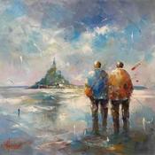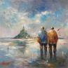 Dieses einzigartige und originale zeitgenössische Kunstwerk "Promenade au Mont St Michel" in dem Stil "Figurativ" wurde von dem zeitgenössischen Künstler Hébert Franck kreiert.