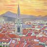 Coucher de soleil à BilbaoGemälde Coucher de soleil à Bilbao von Kochevykh Yulia | Gemälde Figurativ Landschaften Urban Architektur Öl