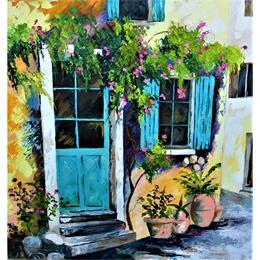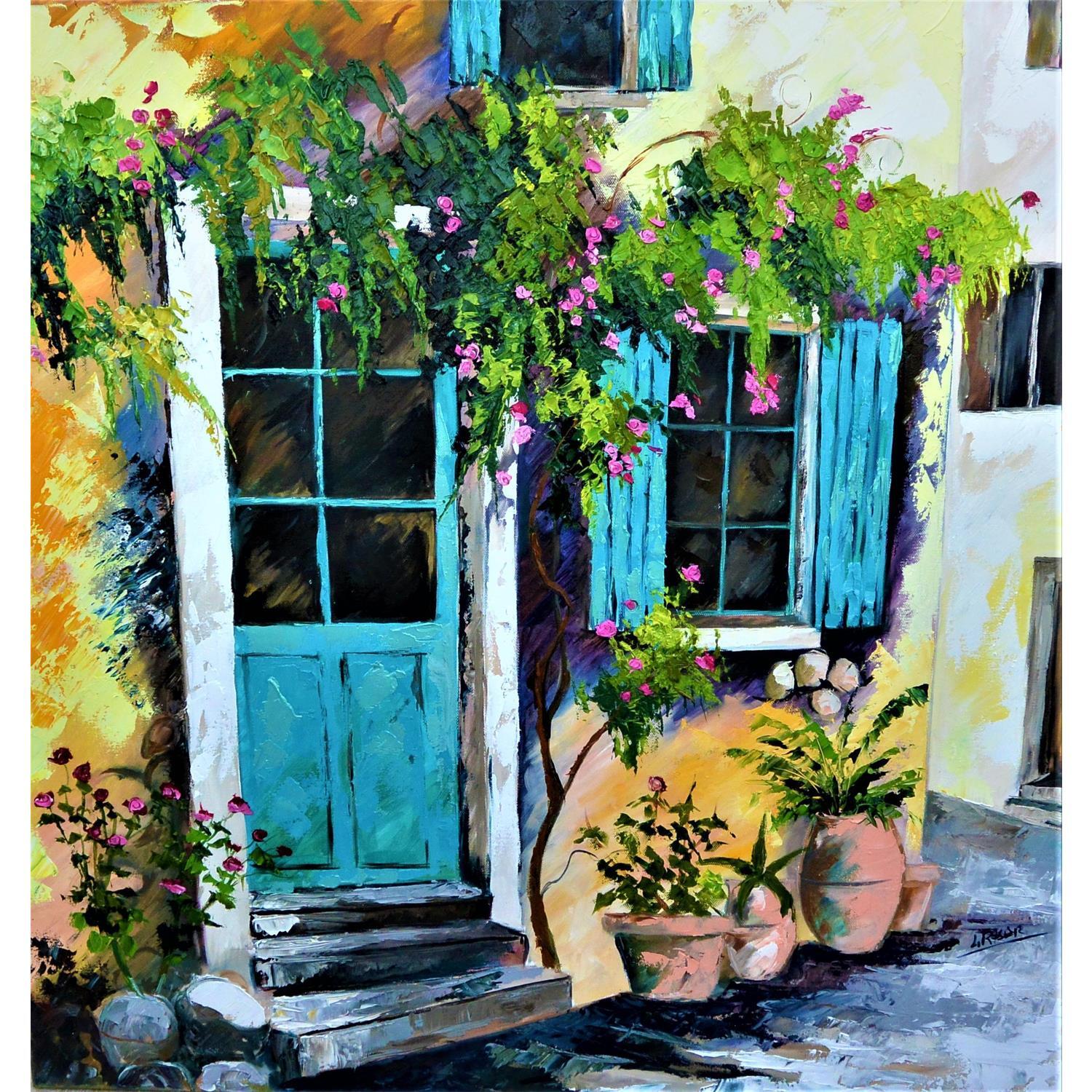 Dieses einzigartige und originale zeitgenössische Kunstwerk "The turquoise shutters of Pernes" in dem Stil "Figurativ" wurde von dem zeitgenössischen Künstler Laura Rose kreiert.