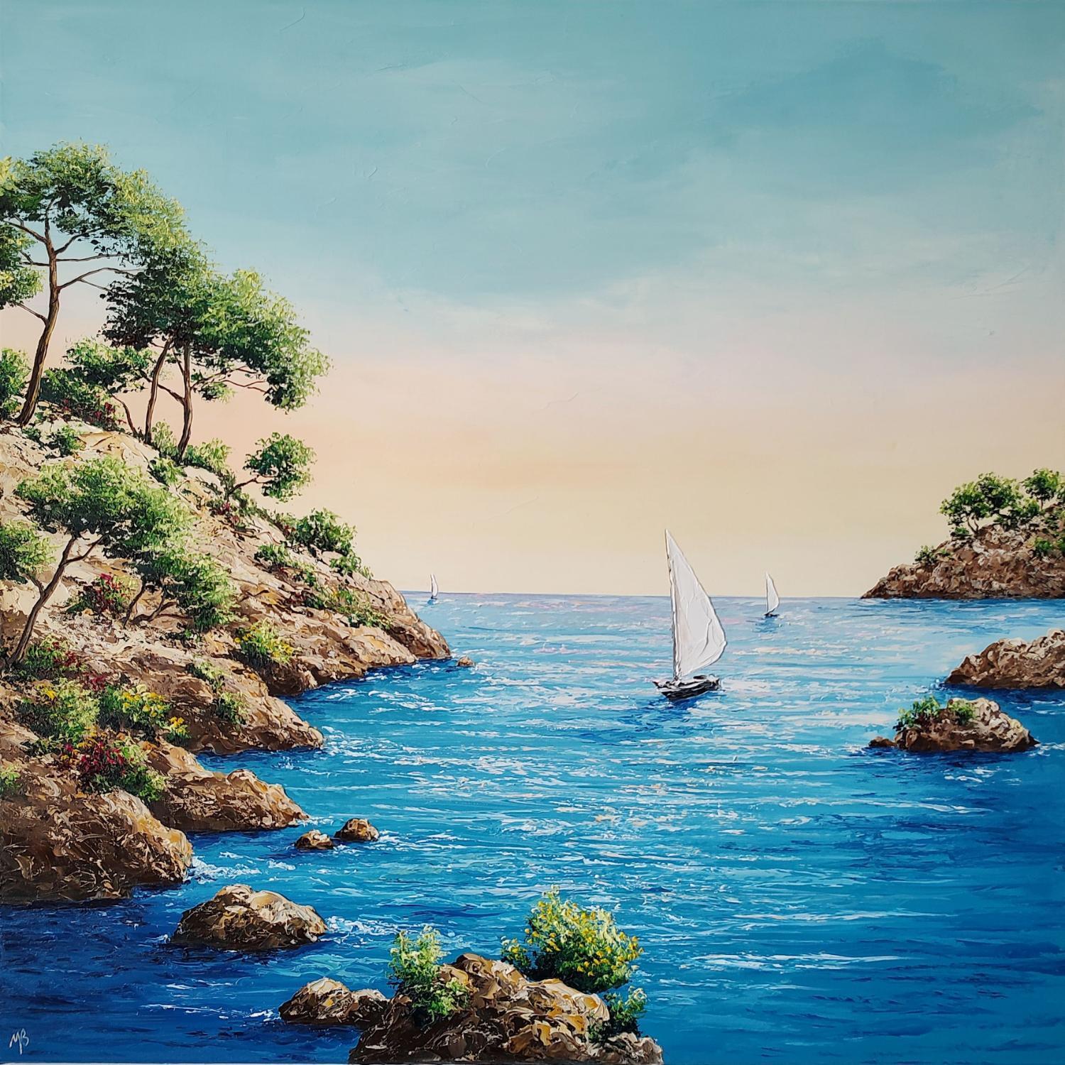 Dieses einzigartige und originale zeitgenössische Kunstwerk "Evasion turquoise" in dem Stil "Figurativ" wurde von dem zeitgenössischen Künstler Blandin Magali kreiert.