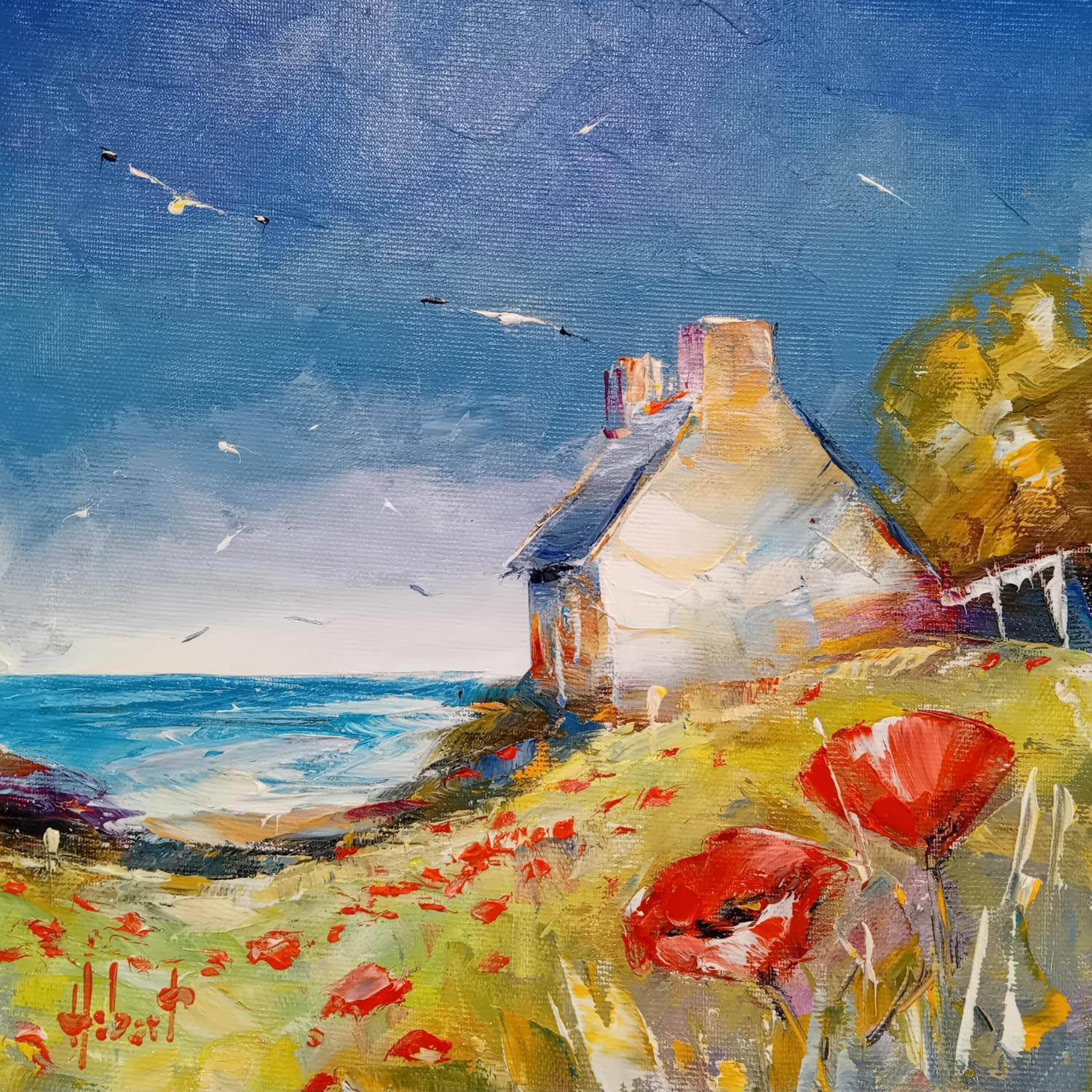 Der Künstler verwendete die Öltechnik, um dieses kleinformatige Gemälde auf Leinwand im figurativen Stil mit den Themen Marine, Landschaften zu schaffen.