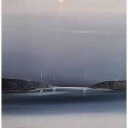 Der Künstler verwendete Öl auf Papier, um dieses Große Gemälde zum Thema "Marine, Minimalistisch" anzufertigen.