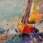 Der Künstler verwendete Öl auf Leinwand, um dieses Kleine Gemälde zum Thema "Landschaften, Marine" anzufertigen.