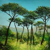 Dieses einzigartige und originale zeitgenössische Kunstwerk "Les pins du sud" in dem Stil "Figurativ" wurde von dem zeitgenössischen Künstler Blandin Magali kreiert.