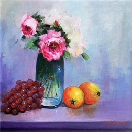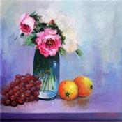 Der Künstler verwendete Öl auf Leinwand, um dieses Kleine Gemälde zum Thema "Stillleben" anzufertigen.
