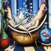 Dieses einzigartige und originale zeitgenössische Kunstwerk "Banó Romantico" in dem Stil "Figurativ" wurde von dem zeitgenössischen Künstler Villanueva Puigdelliura Natalia kreiert.