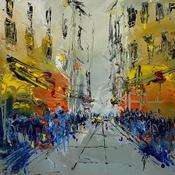 Dieses einzigartige und originale zeitgenössische Kunstwerk "Rue animée" in dem Stil "Figurativ" wurde von dem zeitgenössischen Künstler Raffin Christian kreiert.