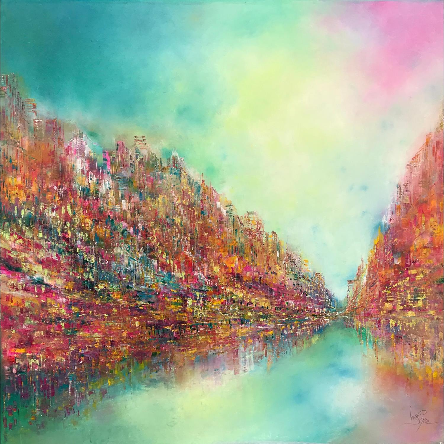 Der Künstler verwendete Öl auf Leinwand, um dieses Große Gemälde zum Thema "Urban" anzufertigen.