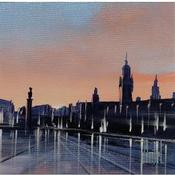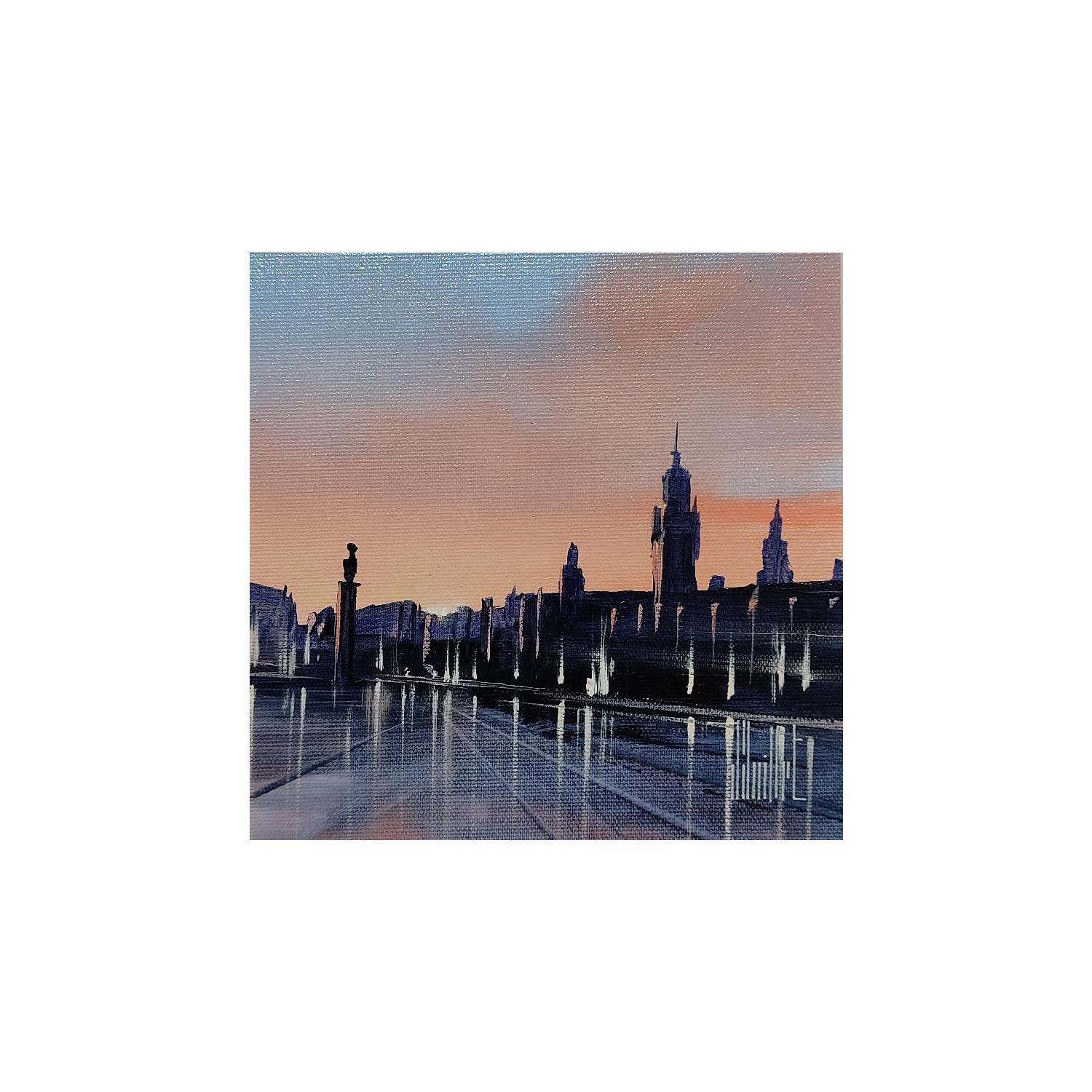 Der Künstler verwendete Öl auf Leinwand, um dieses Kleine Gemälde zum Thema "Urban" anzufertigen.