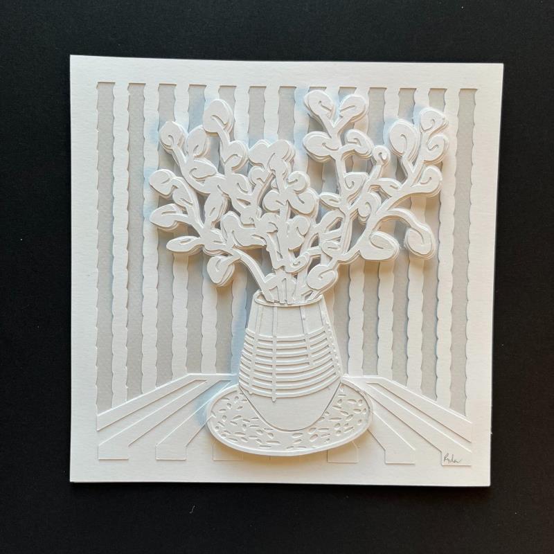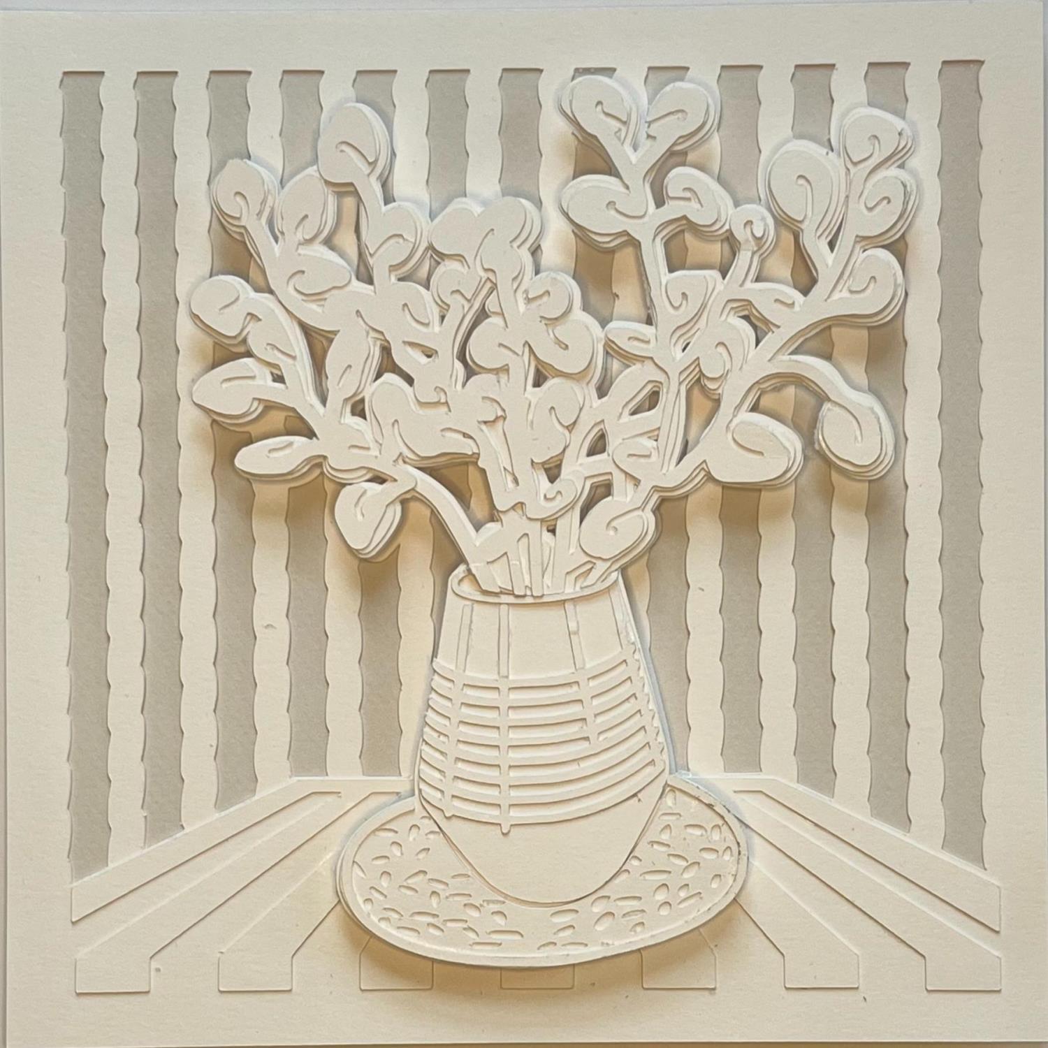 Der Künstler hat viele Schichten von Papier verwendet, um dieses besondere, kleinformatige Werk zu schaffen