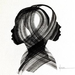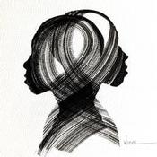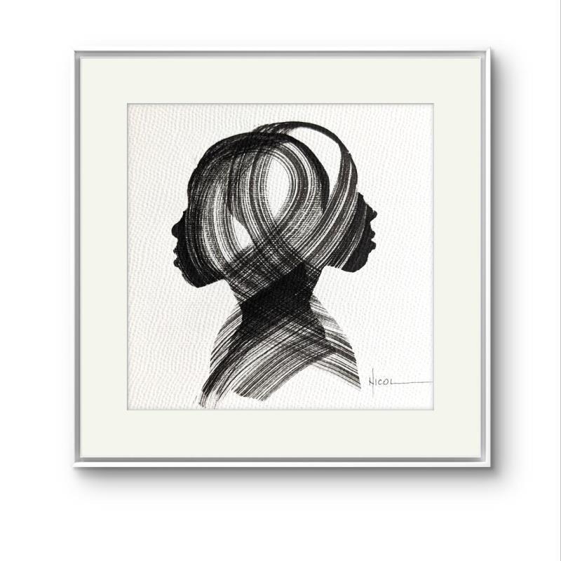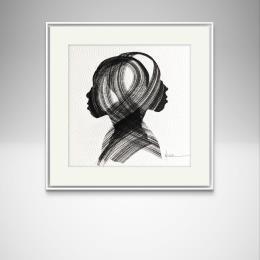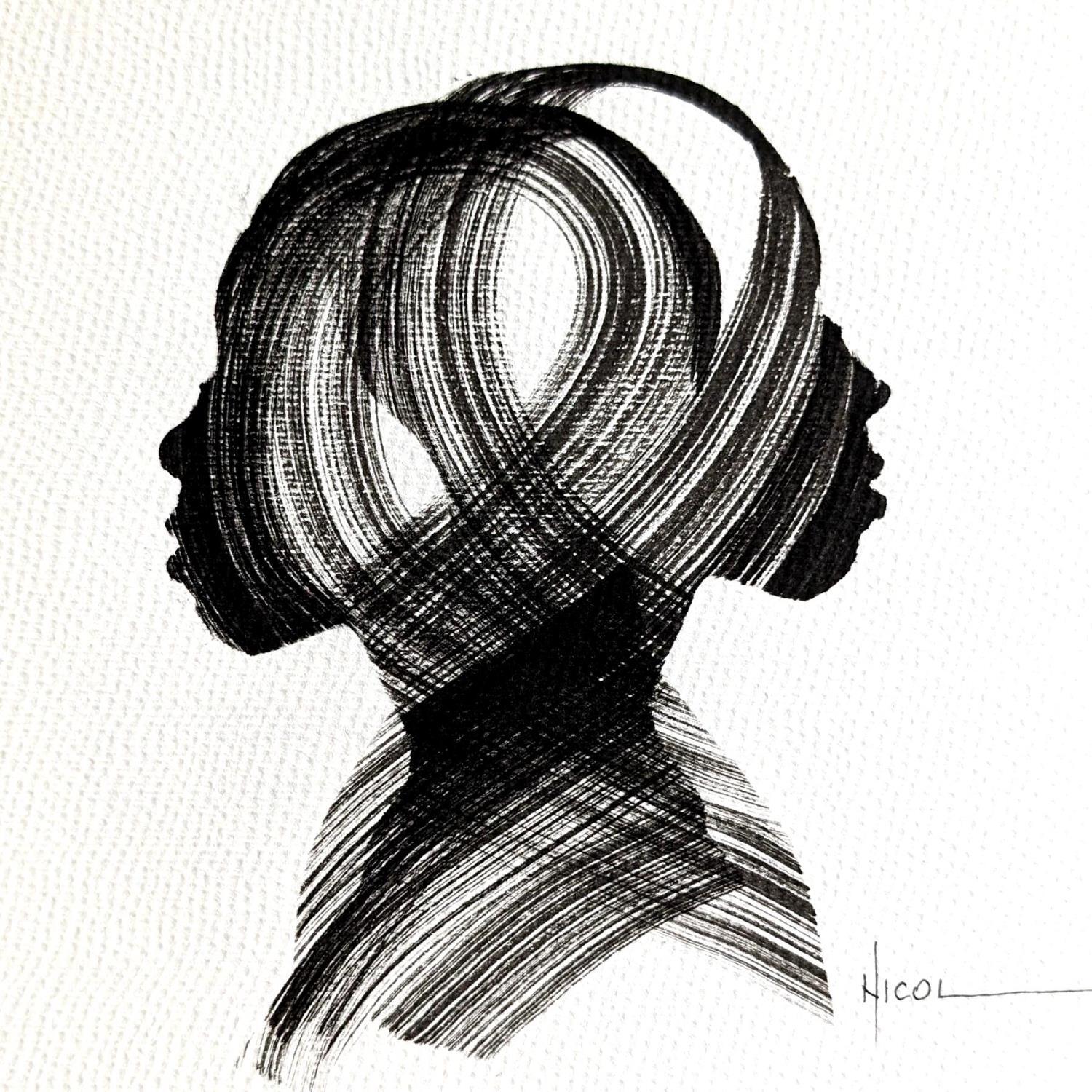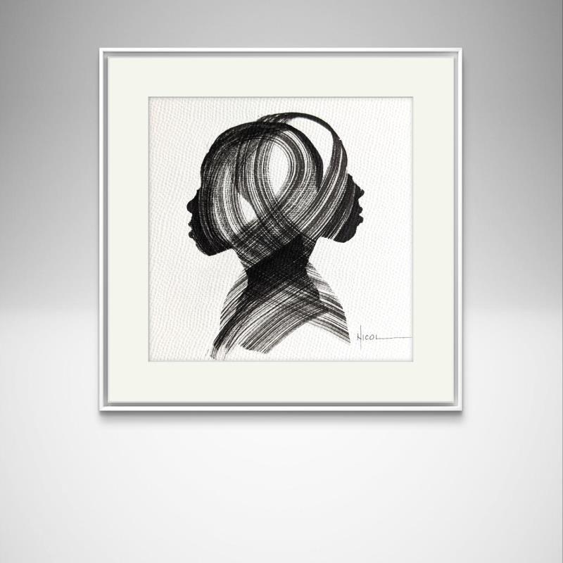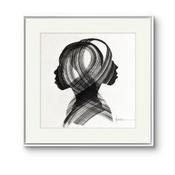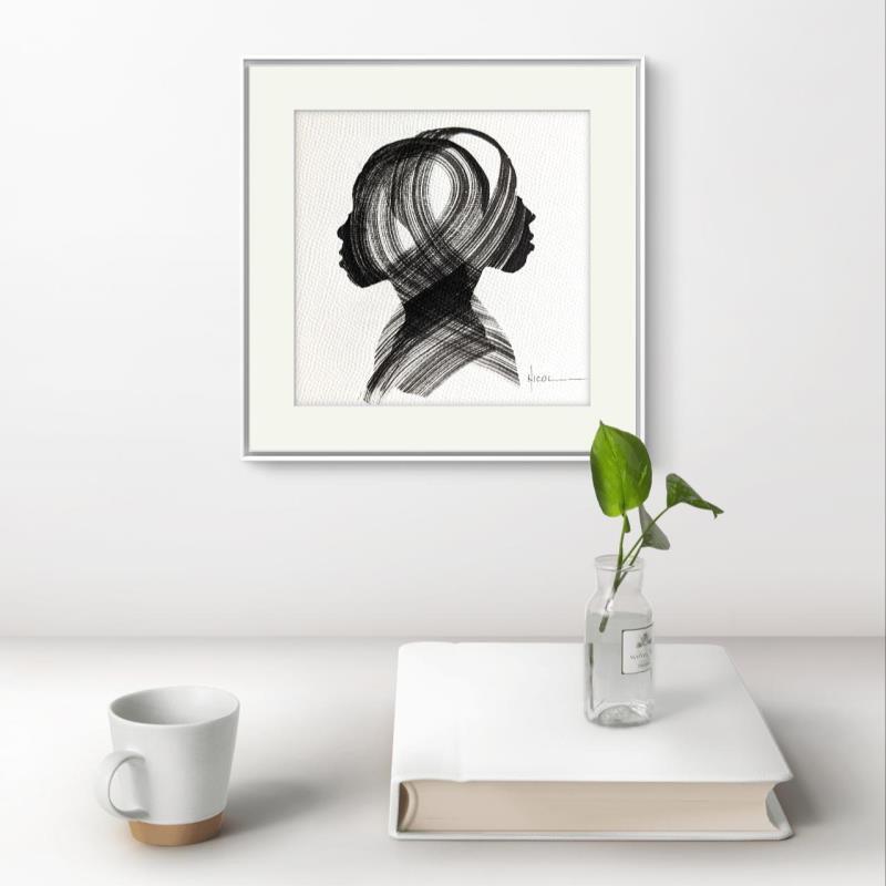 Der Künstler verwendete Tinte, Papier auf Papier, um dieses Kleine Gemälde zum Thema "Minimalistisch, Schwarz & Weiß, Porträt" anzufertigen.