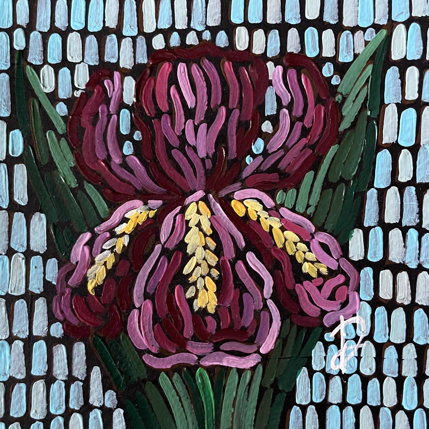 Gemälde Iris bordeaux von Dmitrieva Daria | Gemälde Impressionismus Natur Acryl