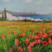 Dieses einzigartige und originale zeitgenössische Kunstwerk "Coquelicots à Paros" in dem Stil "Impressionismus" wurde von dem zeitgenössischen Künstler Sannier Daniel kreiert.