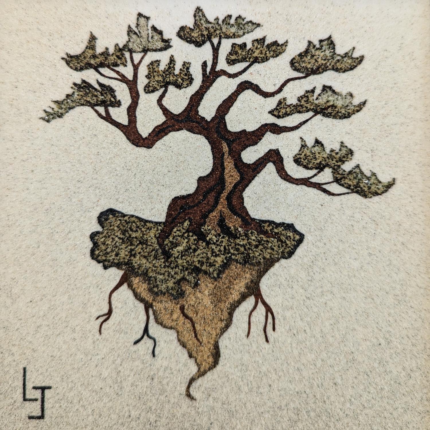 Der Künstler verwendete Sand auf Papier, um dieses Kleine Gemälde zum Thema "Landschaften, Natur" anzufertigen.