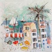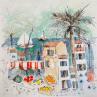 Dieses einzigartige und originale zeitgenössische Kunstwerk "Marché au bord de l' eau" in dem Stil "Naive Kunst" wurde von dem zeitgenössischen Künstler Colombo Cécile kreiert.