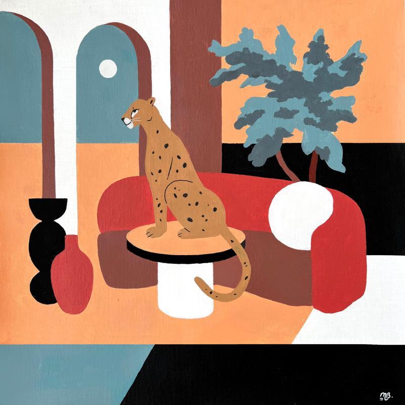 Der Künstler verwendet Acryl Medium auf Leinwand, um diese naive Kunst, kleine Größe Malerei zu schaffen.