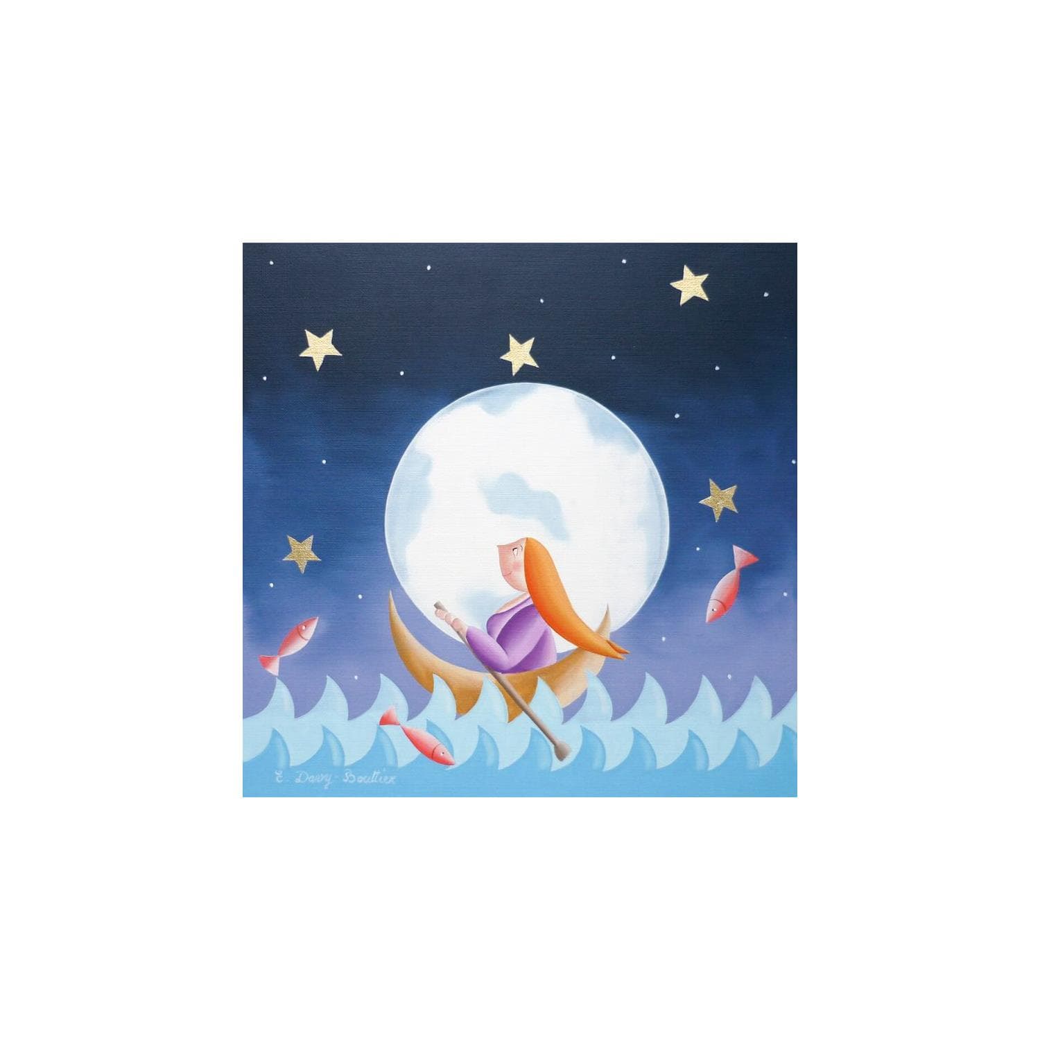 Dieses einzigartige und originale zeitgenössische Kunstwerk "Ballade lunaire" in dem Stil "Naive Kunst" wurde von dem zeitgenössischen Künstler Davy Bouttier Elisabeth kreiert.