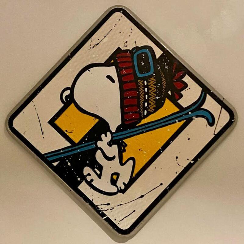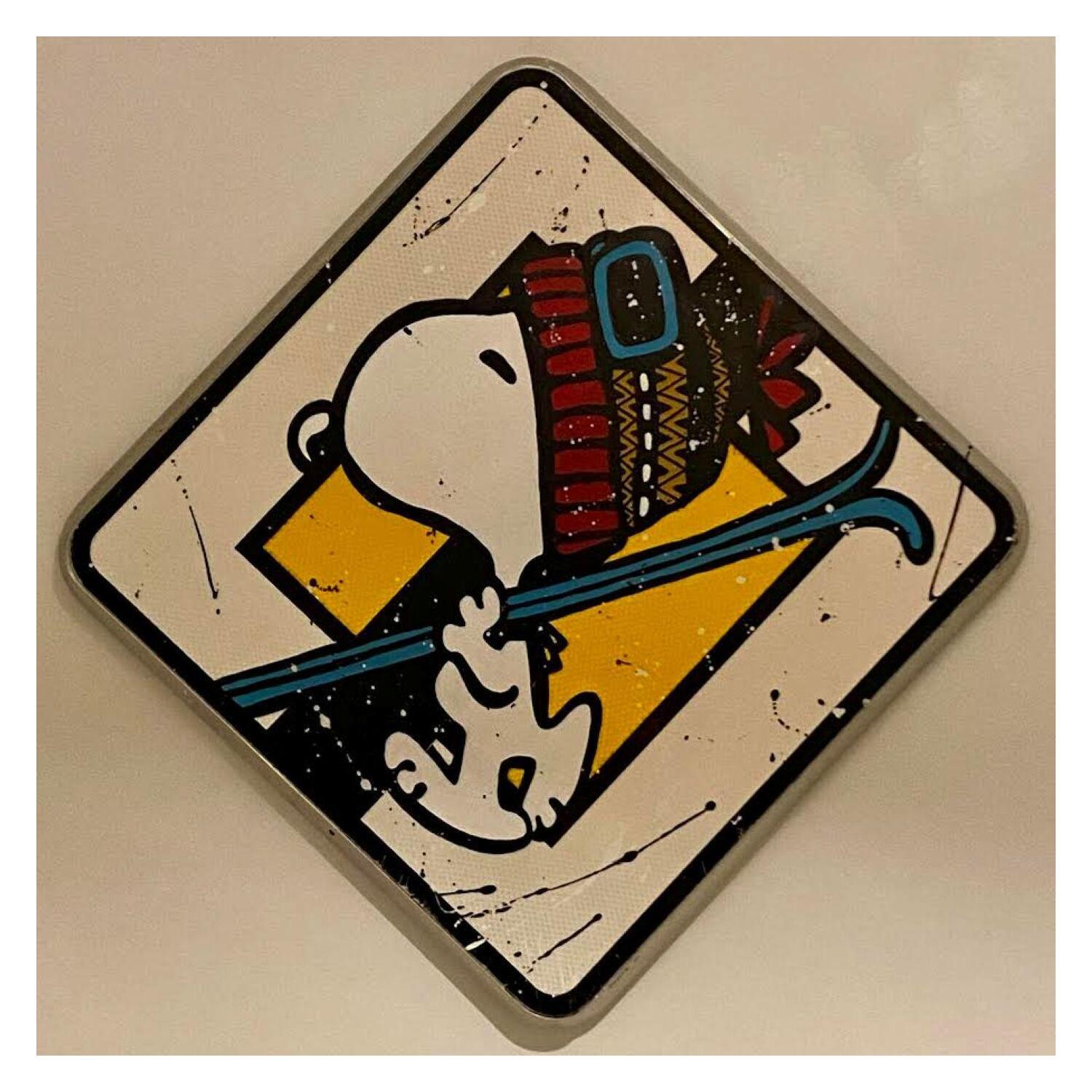 Dieses einzigartige und originale zeitgenössische Kunstwerk "50x50 Snoopy au ski" in dem Stil "Pop-Art" wurde von dem zeitgenössischen Künstler Marie G. kreiert.