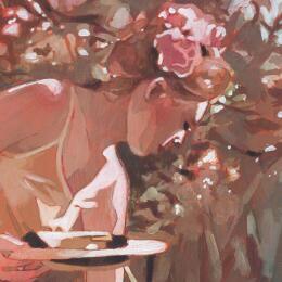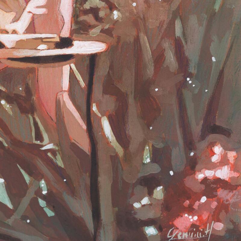 Der Künstler verwendete Acryl, Öl auf Papier, um dieses Kleine Gemälde zum Thema "Natur, Porträt, Alltagsszenen" anzufertigen.