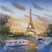 In diesem Aquarell schaffen die warmen Farben und die fließenden Reflexe eine friedliche und leuchtende Atmosphäre, die die Poesie eines Pariser Augenblicks einfängt.