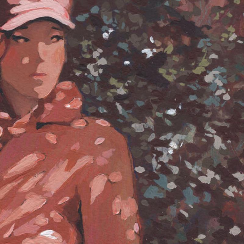 Der Künstler verwendete Öl, Acryl auf Papier, um dieses Kleine Gemälde zum Thema "Alltagsszenen, Modus, Natur" anzufertigen.