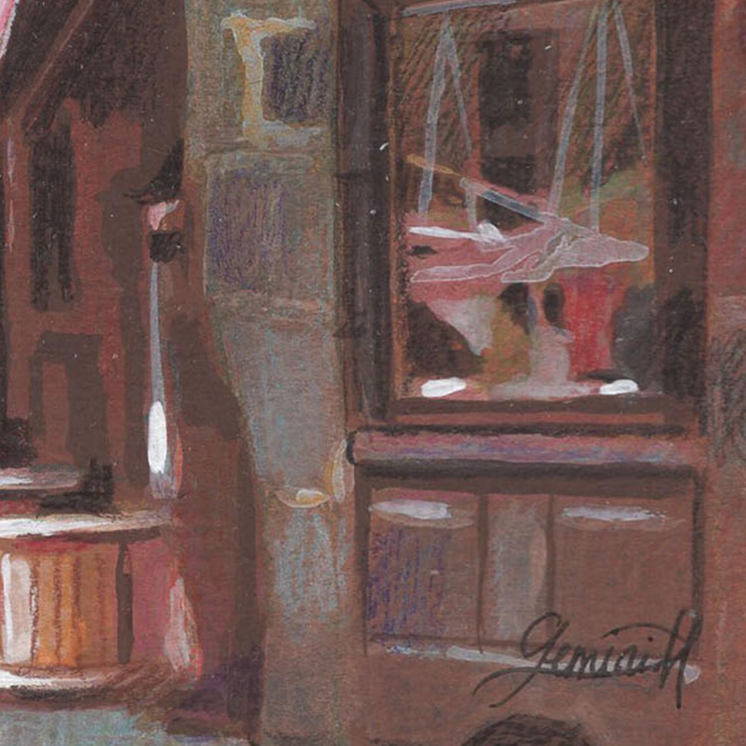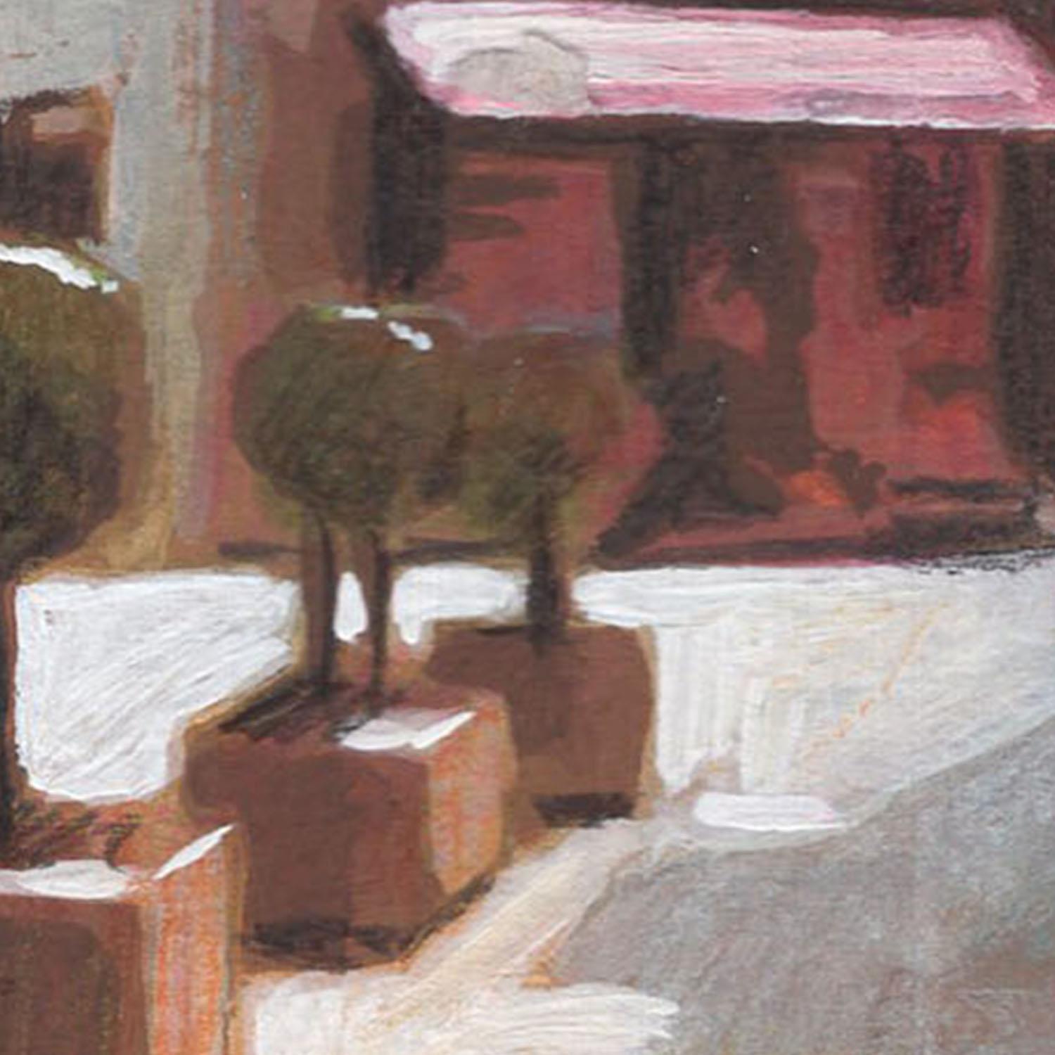 Der Künstler verwendete Öl, Acryl auf Papier, um dieses Kleine Gemälde zum Thema "Urban, Architektur" anzufertigen.