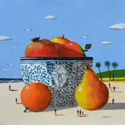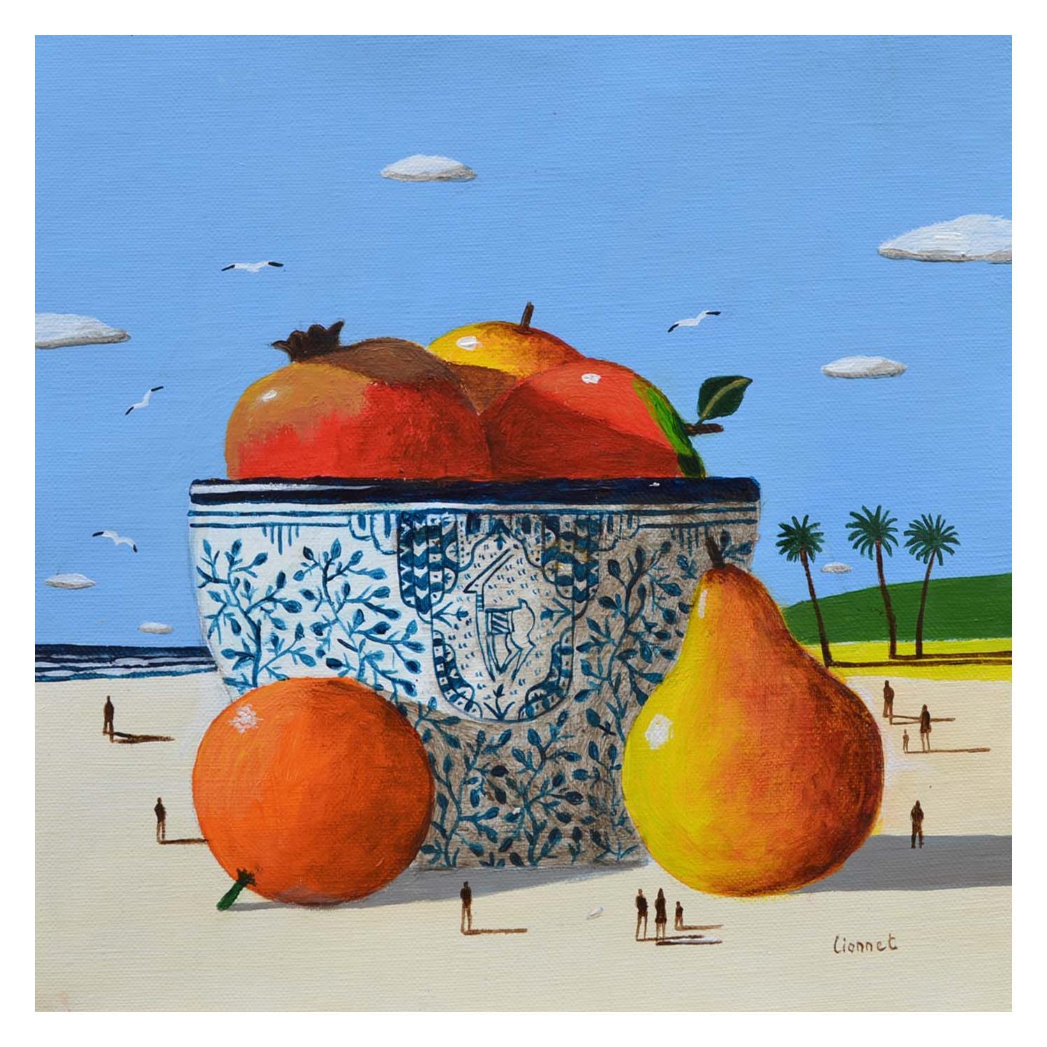 Dieses einzigartige und originale zeitgenössische Kunstwerk "Fruits sur la plage" in dem Stil "Surrealismus" wurde von dem zeitgenössischen Künstler Lionnet Pascal kreiert.