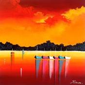 Der Künstler verwendete Acryl, Sand auf Leinenkarton, um dieses Kleine Gemälde zum Thema "Landschaften" anzufertigen.
