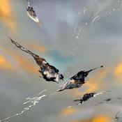 Der Künstler verwendete Acryl auf Leinenkarton, um dieses Große Gemälde anzufertigen.