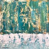 Die Künstlerin verwendete die Mischtechnik (Acryl und Marmorpulver), um dieses kleinformatige Gemälde auf dickem Papier im Stil Figurativ-Abstrakt zum Thema Landschaften zu schaffen.