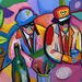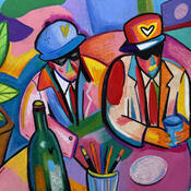 Gemälde Le café* von Crown* | Gemälde Abstrakt Porträt Alltagsszenen Acryl Pastell