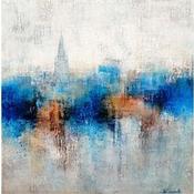 Der Künstler verwendete Acryl auf Leinwand, um dieses Kleine Gemälde zum Thema "Urban" anzufertigen.