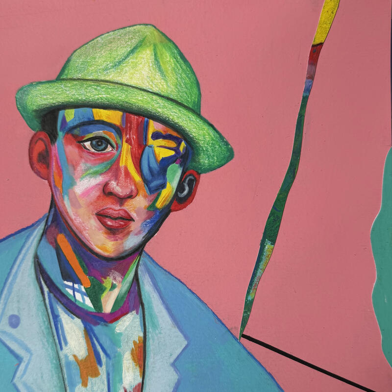 Gemälde Le peintre* von Crown* | Gemälde Abstrakt Porträt Collage Pastell