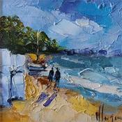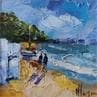 Der Künstler verwendete Öl auf Leinwand, um dieses Kleine Gemälde zum Thema "Alltagsszenen" anzufertigen.