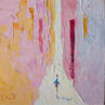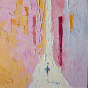 Der Künstler verwendete Öl auf Papier, um dieses Kleine Gemälde zum Thema "Alltagsszenen, Urban" anzufertigen.