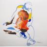 Der Künstler verwendete Acryl auf Papier, um dieses Kleine Gemälde zum Thema "Akt" anzufertigen.