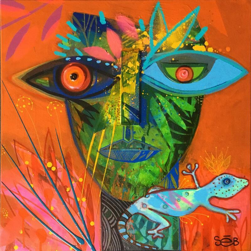Dieses einzigartige und originelle zeitgenössische Kunstwerk "Gekko" wurde von dem zeitgenössischen Künstler Seb geschaffen.