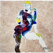 Der Künstler verwendete Acryl auf Papier, um dieses Kleine Gemälde zum Thema "Akt" anzufertigen.