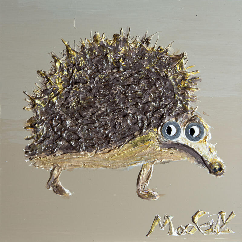 Der Künstler verwendete Acryl, Pigmente, Harz auf Dibon, um dieses Kleine Gemälde zum Thema "Tiere" anzufertigen.