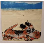 Der Künstler verwendete Acryl, Tinte, Pigmente, Sand auf Papier, um dieses Kleine Gemälde zum Thema "Tiere" anzufertigen.