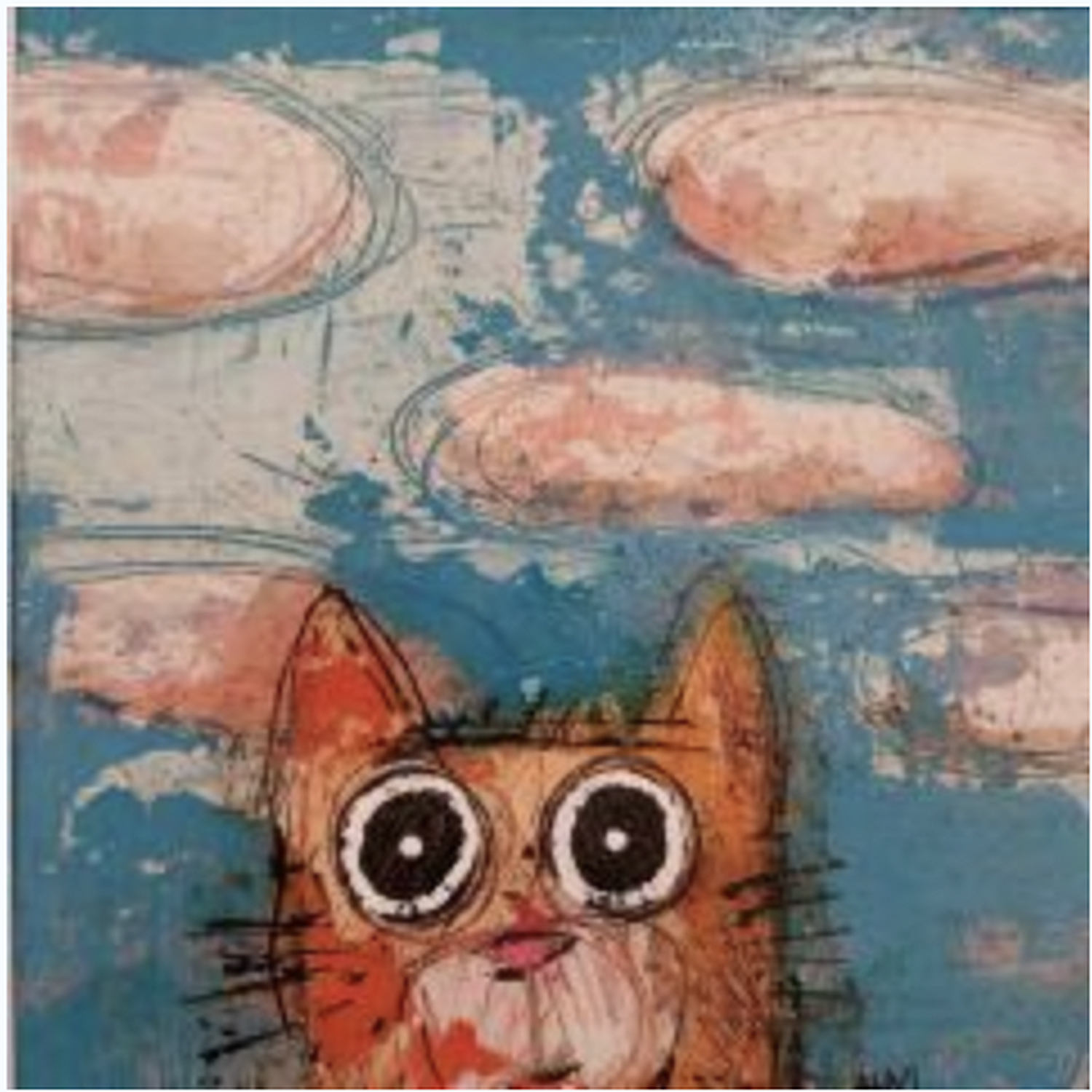 Dieses einzigartige und originale zeitgenössische Kunstwerk "Dans les nuages" in dem Stil "Art brut" wurde von dem zeitgenössischen Künstler Maury Hervé kreiert.