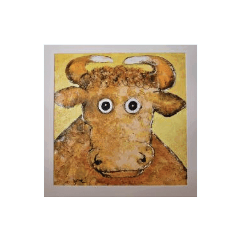 Der Künstler verwendete Acryl, Tinte, Pigmente, Sand auf Papier, um dieses Kleine Gemälde zum Thema "Tiere" anzufertigen.